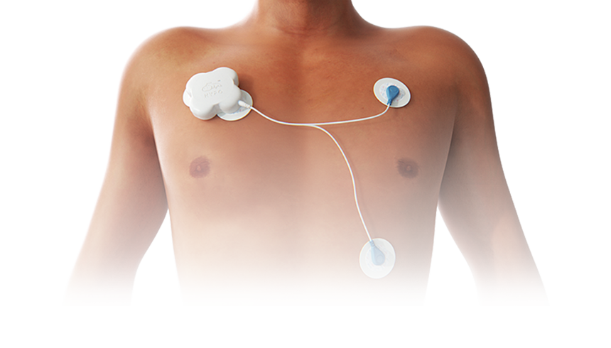 HYPO uses four electrodes positioned on the chest to capture a clean ECG signal—two built into the patch, two external.