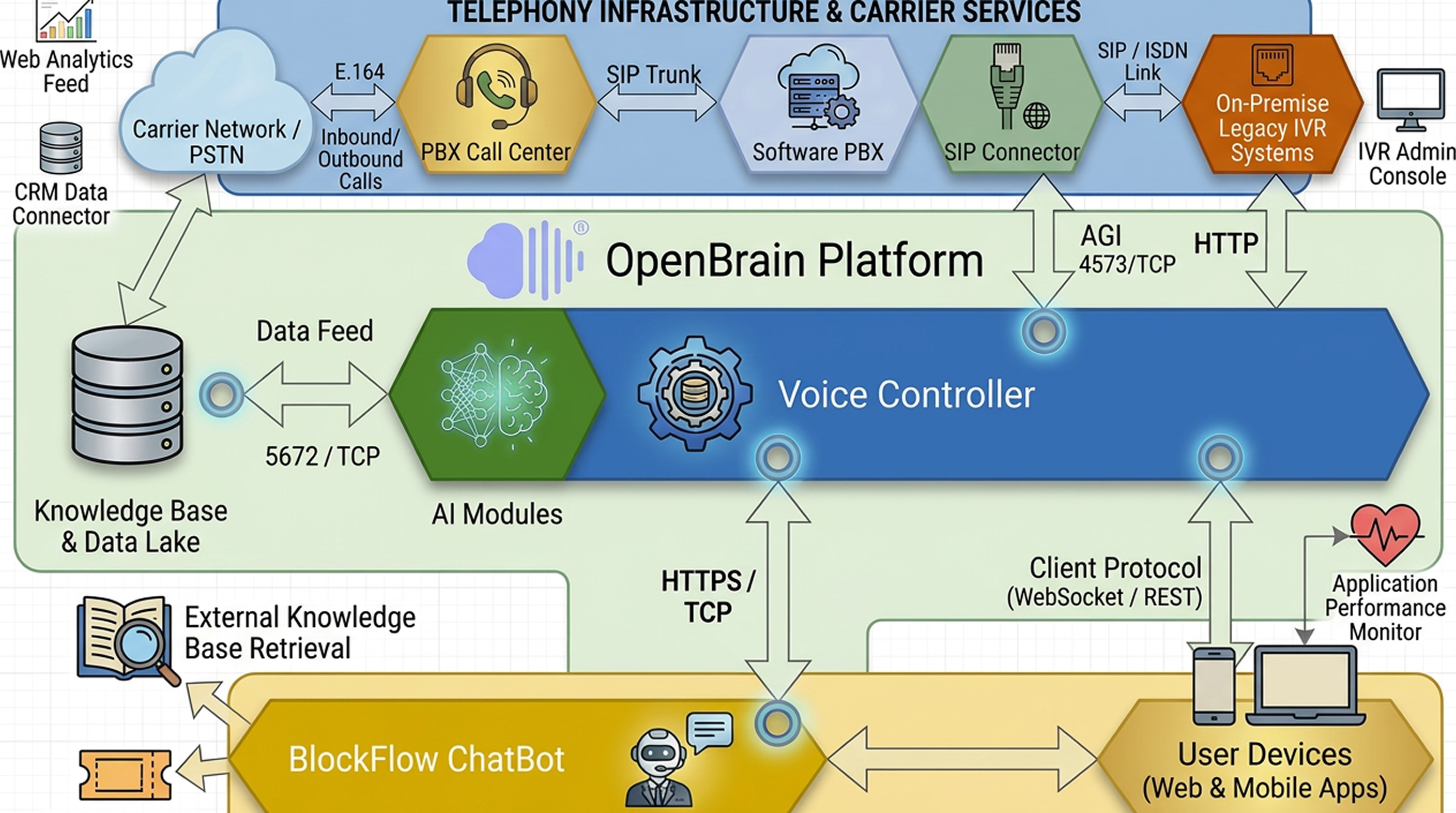 OpenBrain is ideal for organizations that need more than a generic conversational assistant. Its architecture supports real-world operational complexity across sectors such as customer support, healthcare, finance, telecommunications, and service operations.