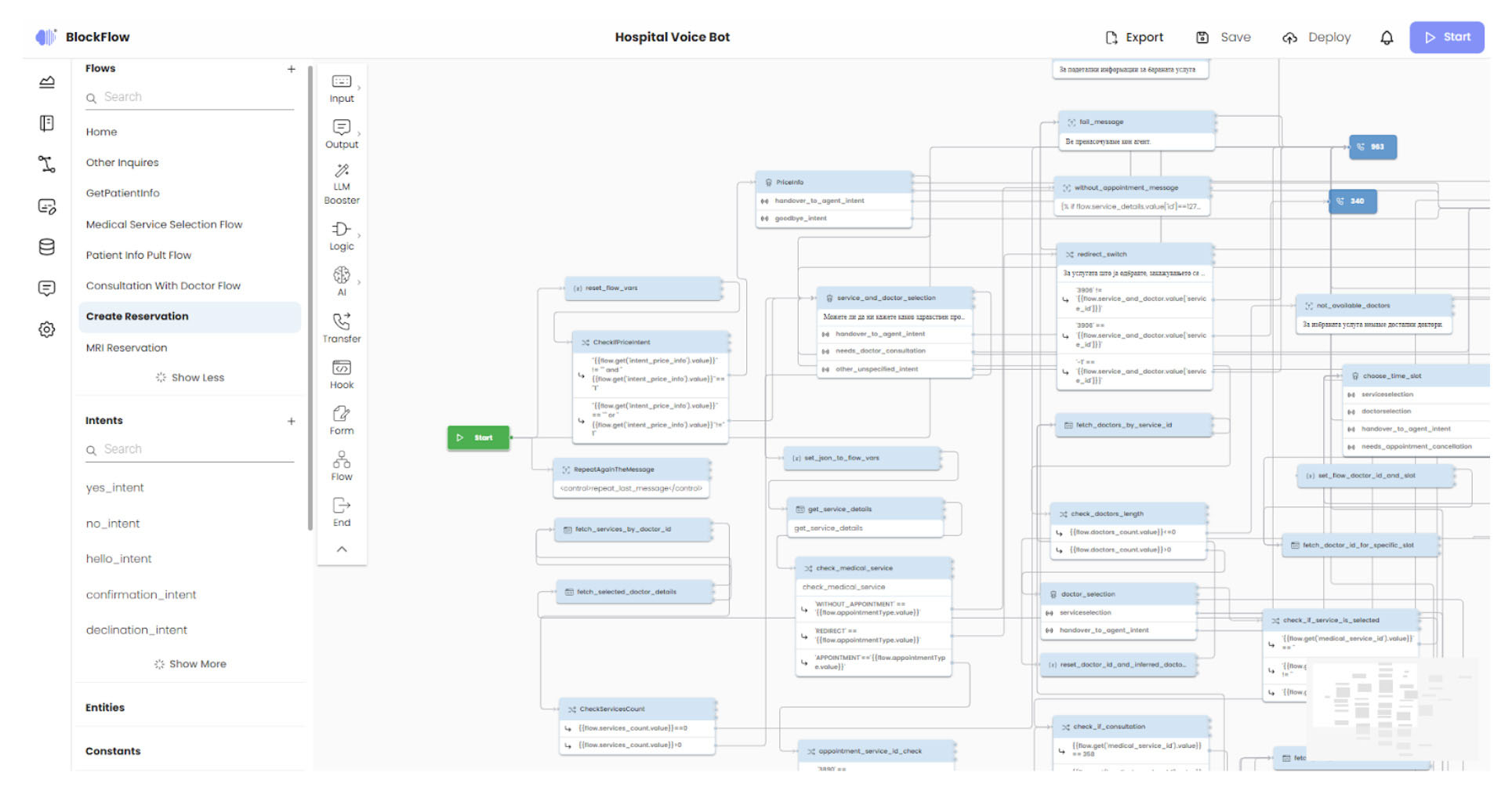 BlockFlow allows teams to visually design, manage, and govern conversational workflows through modular building blocks. These blocks can capture input, generate output, process information, and route conversations based on context and business logic. By combining structured workflow design with LLM-powered intelligence, BlockFlow gives organizations the flexibility of generative AI without giving up control, predictability, or transparency.